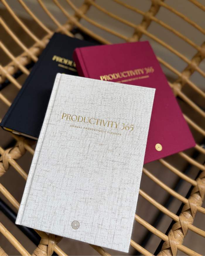El Productivity 365 es nuestro nuevo planner. Tiene una duración anual e incluye vistas semanales, además de todo el contenido de crecimiento personal. Está pensado para mantener una visión más amplia de tu productividad y progreso a lo largo del año.